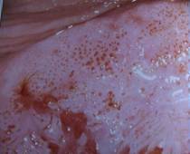 se la portio è normale la mucosa assume un colorito rosa brillante.