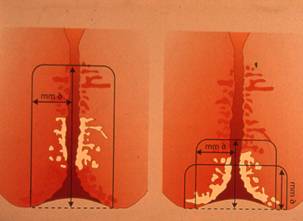 se la lesione si estende fin dentro il canale cervicale l' altezza del cono è massima e base stretta. E' indicata, quando