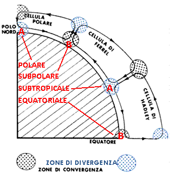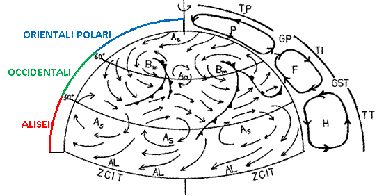 orientali, connesse con i sottostanti alisei, mentre tra i tropici e i poli