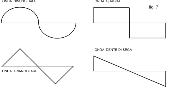 Un buon oscillatore si estende in frequenza da circa 0,05 Hz a 20 kHz (full range), ed e' in grado di produrre simultaneamente diverse forme d'onda. le forme d'onda più' comuni disponibili nella maggior parte degli oscillatori (fig. 7) in commercio sono: