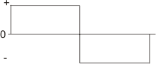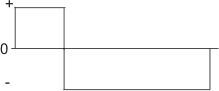 + e - coprono rispettivamente il 50 % della durata di un periodo.