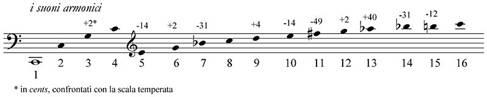 (Questa serie di note è la base fisica che ha dato origine al temperamento naturale. Secondo questa suddivisione i 5 toni e i 2 semitoni dell'ottava, risultando leggermente differenti, impedivano al sistema di potersi replicare simmetricamente partendo da suoni diversi. Subentrò nel tempo il sistema temperato, nel quale l'ottava è suddivisa in 12 suoni a distanza perfettamente uguale tra loro.)