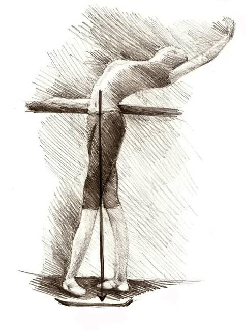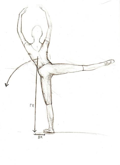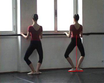 Se i piedi del ballerino sono distanti, anche se con il tronco non è perfettamente diritto e perpendicolare al suolo la forza peso rientra comunque nella base d'appoggio.