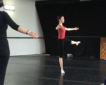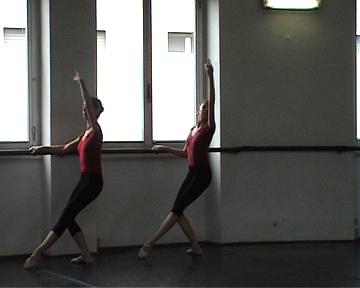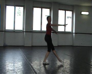 In questa foto (fig 9) possiamo vedere un esempio di rotazione rispetto ad un punto( ovvero l'attaccatura coxo femorale della gamba), in un esercizio chiamato rond de jambe.