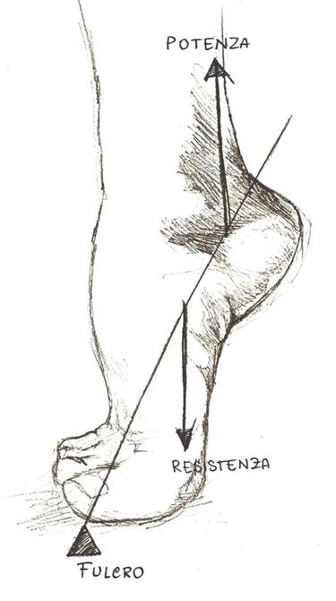 Il peso del corpo è applicato sulla caviglia(resistenza), mentre il tricipite surale rende possibile il movimento.