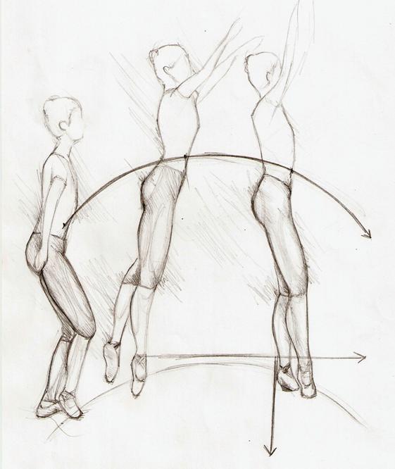 Per saltare un ballerino deve dare una forte spinta contro il suolo: la posizione ideale di partenza è quindi il pliè, che permette di spingere con forza maggiore e più duratura( fig10:azione).