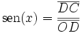 Più in generale, si definisce il seno di un angolo x (espresso in gradi o radianti) a partire dalla circonferenza goniometrica, ovvero dalla circonferenza di raggio unitario nel piano cartesiano. Presa la semiretta uscente dall'origine che forma un angolo x con l'asse delle ascisse come in figura, il seno dell'angolo è quindi definito come il valore della coordinata y del punto di intersezione tra la semiretta e la circonferenza (in figura, è la lunghezza del segmento CD).