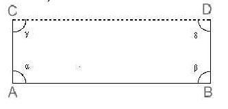 Naturalmente gli angoli A e B sono uguali e retti, dato che i segmenti AC e BD sono perpendicolari alla base AB, Saccheri quindi ipotizzò che anche gli angoli C e D fossero simili.