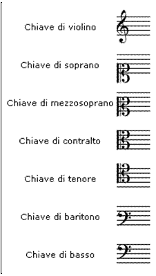 complesso delle sette diverse posizioni sul pentagramma delle tre chiavi musicali di fa, di do e di sol al fine di indicare, nella moderna notazione occidentale, l'altezza delle note.