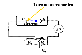 d'onda), vengono emessi elettroni. Se il potenziale dell'elettrodo (anodo) è