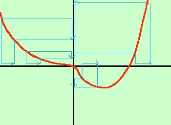 Prima la funzione (il punto sull'asse y corrispondente alla x) scende rapidamente