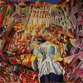 In Visioni simultanee (1911) una donna si affaccia al balcone,