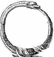 Molto più antico è invece l'ouroboros, che rappresenta il concetto d'infinito mediante l'immagine di un serpente che si morde la coda formando un cerchio. Attribuito all'antica alchimista Cleopatra, questo simbolo rappresenta la natura ciclica delle cose, la teoria dell'eterno ritorno: in sostanza tutto ciò che è assimilabile ad un ciclo infinito. Per derivazione anche l'eternità è una metafora spesso associata a questo simbolo in quanto data dal ripetersi costante di cicli infiniti, è anche simbolo del paradosso logico.