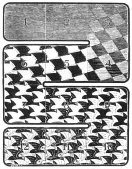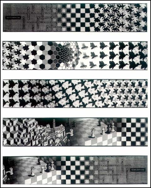 Le Metamorfosi sono un'opera famosa di Escher, questo è solo un esempio a scopo di farne comprendere la tecnica.