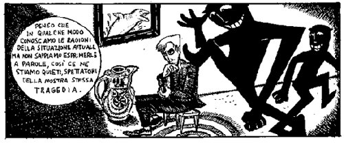 ALEKSANDAR 'SASA' ZOGRAF Dal 24 marzo ogni giorno e ogni notte i bombardieri dell'alleanza imperiale attraversano i cieli della Repubblica Serba dispiegando la potenza della loro tecnologia di morte. Le parole di Aleksandar raccontano la vita sotto le bombe. Alexandar Zograf e' un fumettista e giornalista di musica rock, di Pancevo, cittadina nei pressi di Belgrado, che lavora per diversi giornali indipendenti fin dal 1986. Nel 1991 'Sasa' pubblica un minicomic autoprodotto, 'Alas!' Comics, che lo introduce sulla scena editoriale nordamericana. In seguito pubblica per le edizioni Fantagraphics, collabora alla rivista diretta da Robert Crumb 'Weirdo', pubblica i suoi lavori nel circuito underground di una decina di paesi del mondo e in Italia viene pubblicato su 'Mano'. Nelle sue tavole convivono le atmosfere di guerra, nella decomposizione della ex-Jugoslavia, e i suoi incubi. Nel 1996 pubblica negli Usa 'Psychonaut', e si mette all'opera per raccogliere le sue visioni, insieme a Gordana, per l'etichetta Kitchen Sink. Il Centro Fumetto Andrea Pazienza ha pubblicato il suo primo comic book italiano, 'Diario', cronaca della guerra civile nella ex-lugoslavia, nella collana 'Schino presenta". Le sue storie quali 'E se scoppiasse la guerra civile nel vostro paese?' vengono riproposte da Dario Morgante su 'Kerosene'.