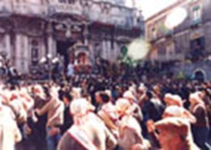 E lo sparo dei mortaretti e dei fuochi d'artificio accompagna il Santo ininterrottamente, si può ben dire, dall'uscita solenne del fercolo che avviene normalmente verso le ore 11) al rientro in chiesa dopo l'estenuante giro, a notte inoltrata, quando per il troppo gridare la masse dei "divoti" è ormai diventata afona.