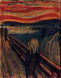 At the age of 30, Edward Munch painted The Scream. Self described as the try to represent "an infinite scream passing through nature", is probably the most known representation of Angst or Anguish. It expresses the artist's anxiety and pessimism, caused by the confusion and loneliness of existence.