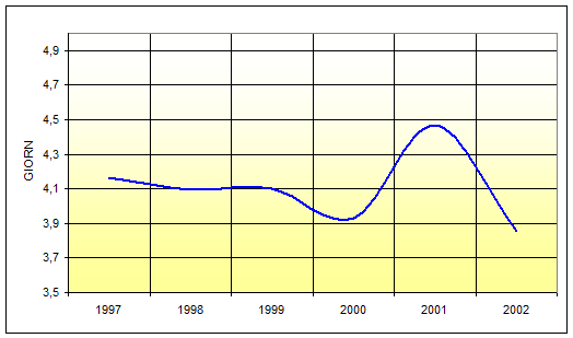 Fig. 4 - Permanenza media dei turisti nei comuni della montagna Pistoiese (1997-2002)