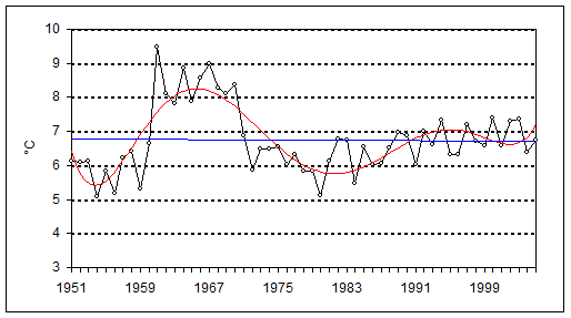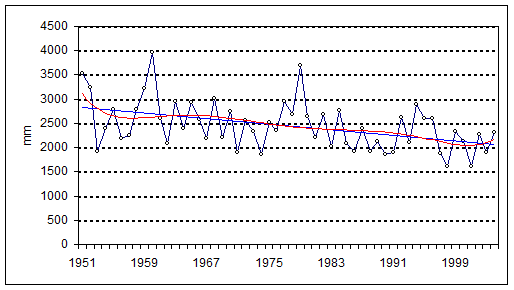 Fig. 12 - Andamento interannuale delle precipitazioni a San Marcello Pistoiese (1951-2004).