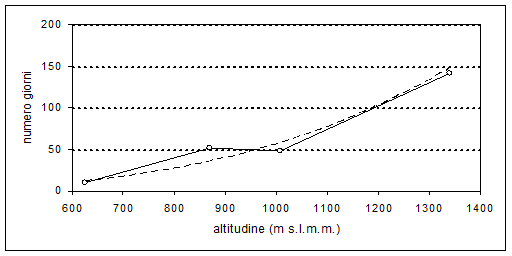 4.5.1 - Gradiente nivometrico verticali del numero di giorni nevosi